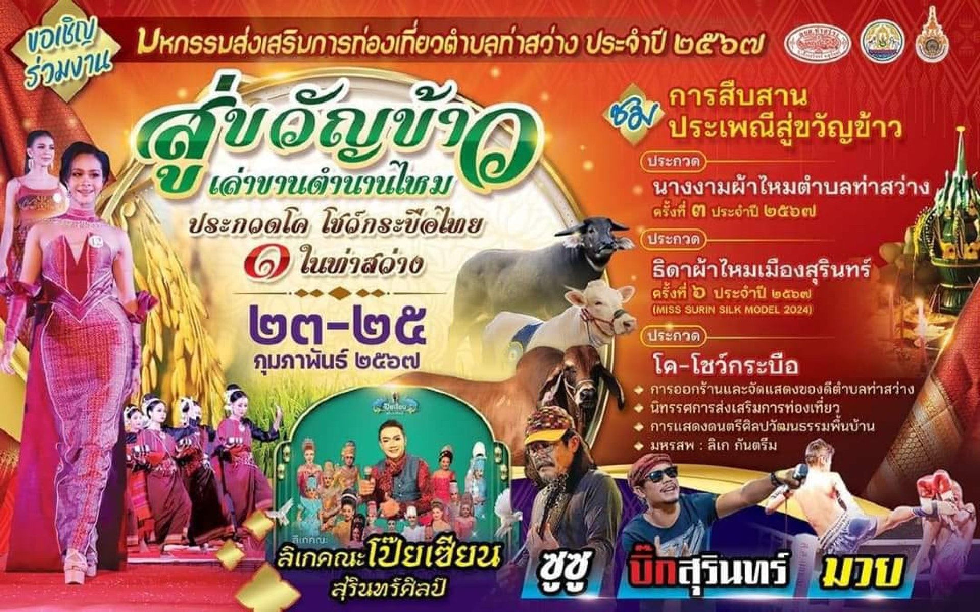 ขอเชิญท่องเที่ยวงานสู่ขวัญข้าว เล่าขานตำนานไหม ประกวดโค โชว์กระบือไทย ๑ ในท่าสว่าง