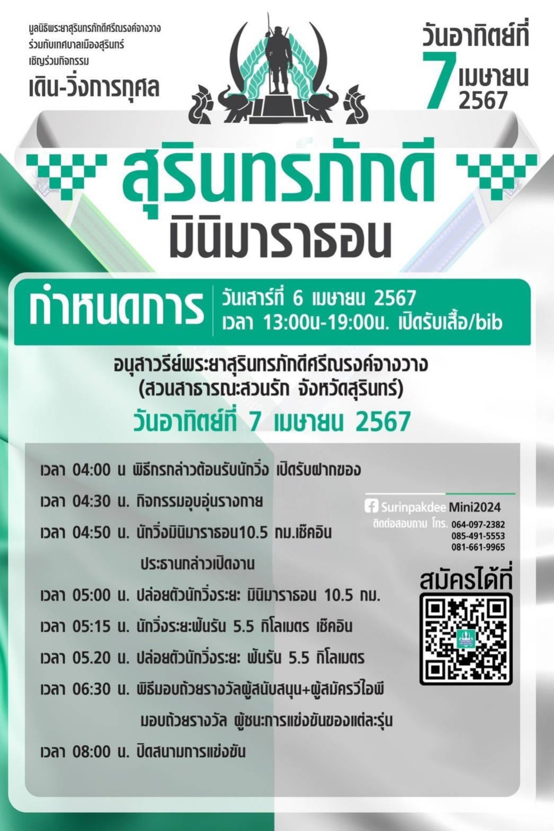 เชิญร่วมกิจกรรม เดิน-วิ่งการกุศลสุรินทร์ภักดีมินิมาราธอน2024