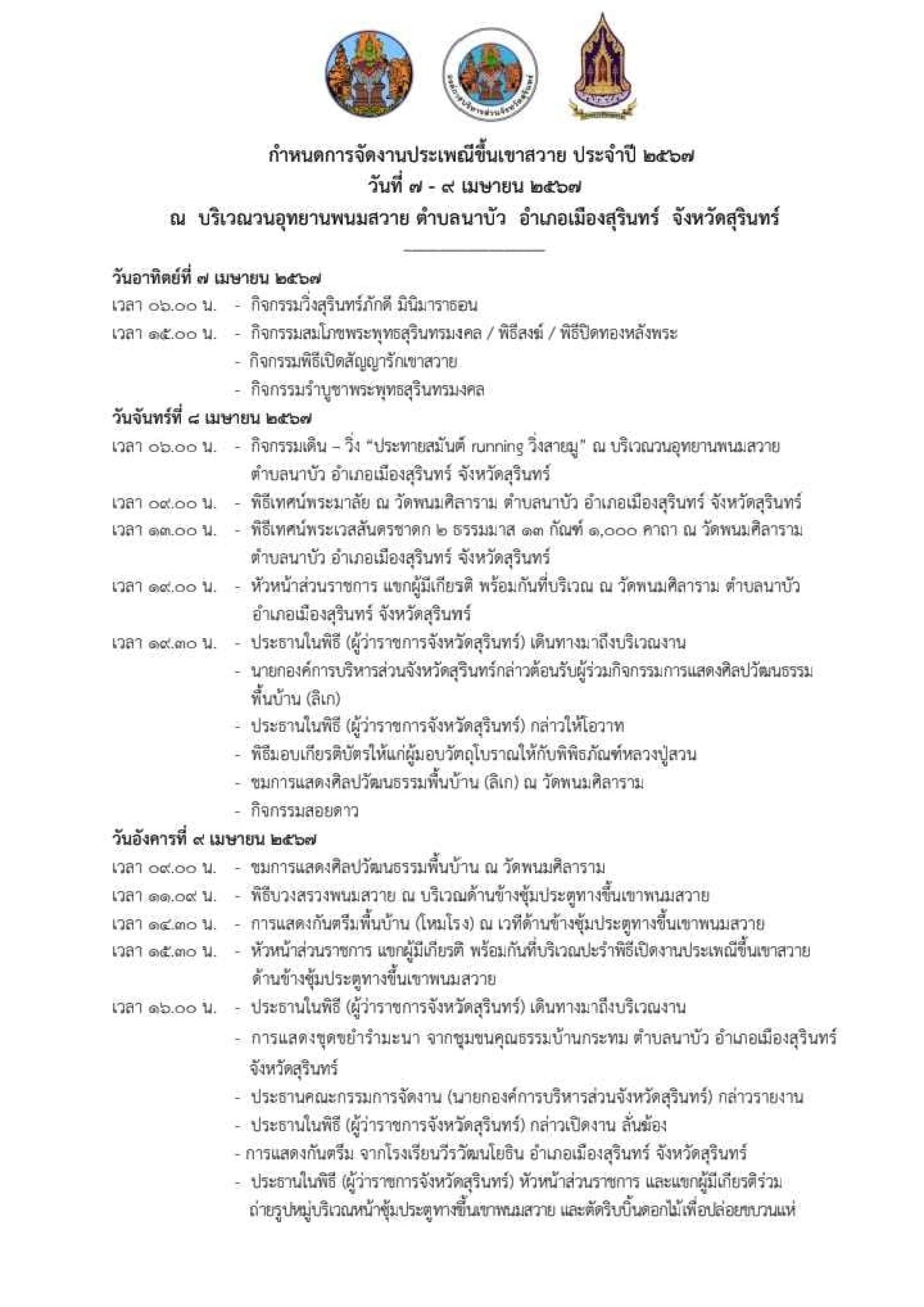 กำหนดการจัดงานประเพณีขึ้นเขาสวาย ประจำปี2567