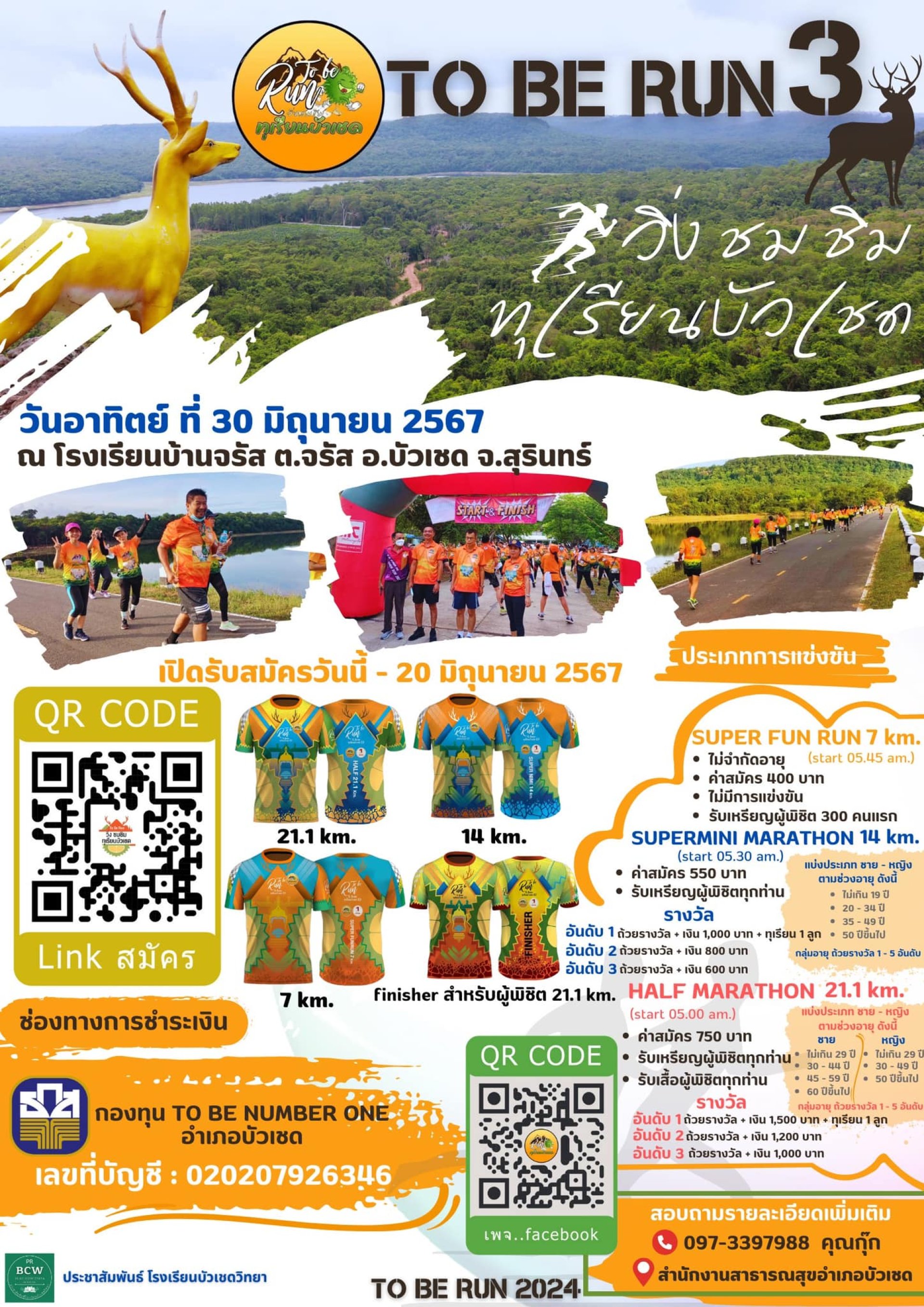 แล้วพบกันครับ วิ่งพิชิตวัดเขาศาลาอำเภอบัวเชด สุรินทร์ ใครสนใจรีบลงสมัครกันได้เลยที่ กิจกรรม เดิน-วิ่ง To Be Run วิ่ง ชมชิม ทุเรียนบัวเชดฮาล์ฟปี3