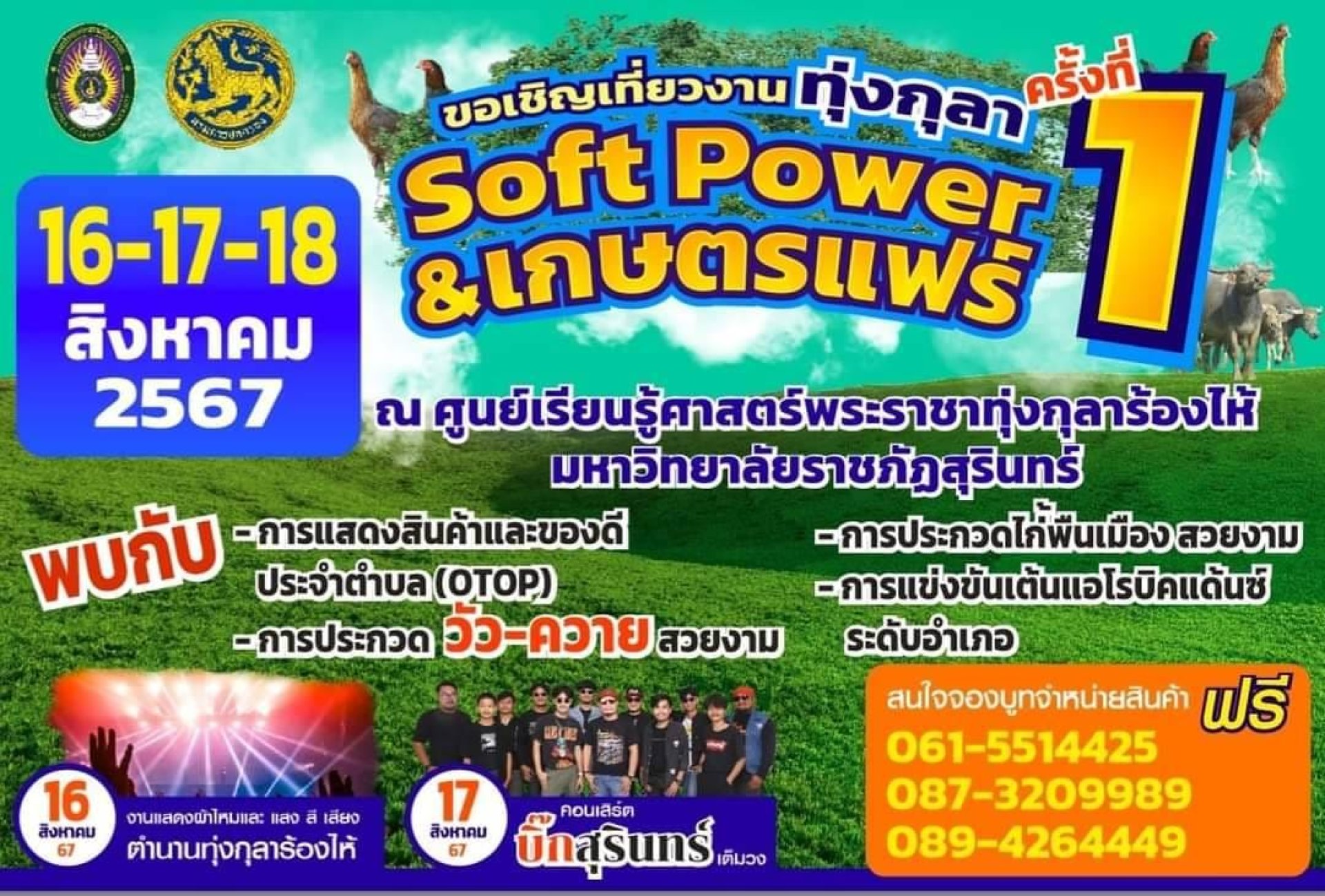 ขอเชิญเที่ยวงาน ทุ่งกุลา Soft Power&เกษตรแฟร์ ครั้งที่ 1