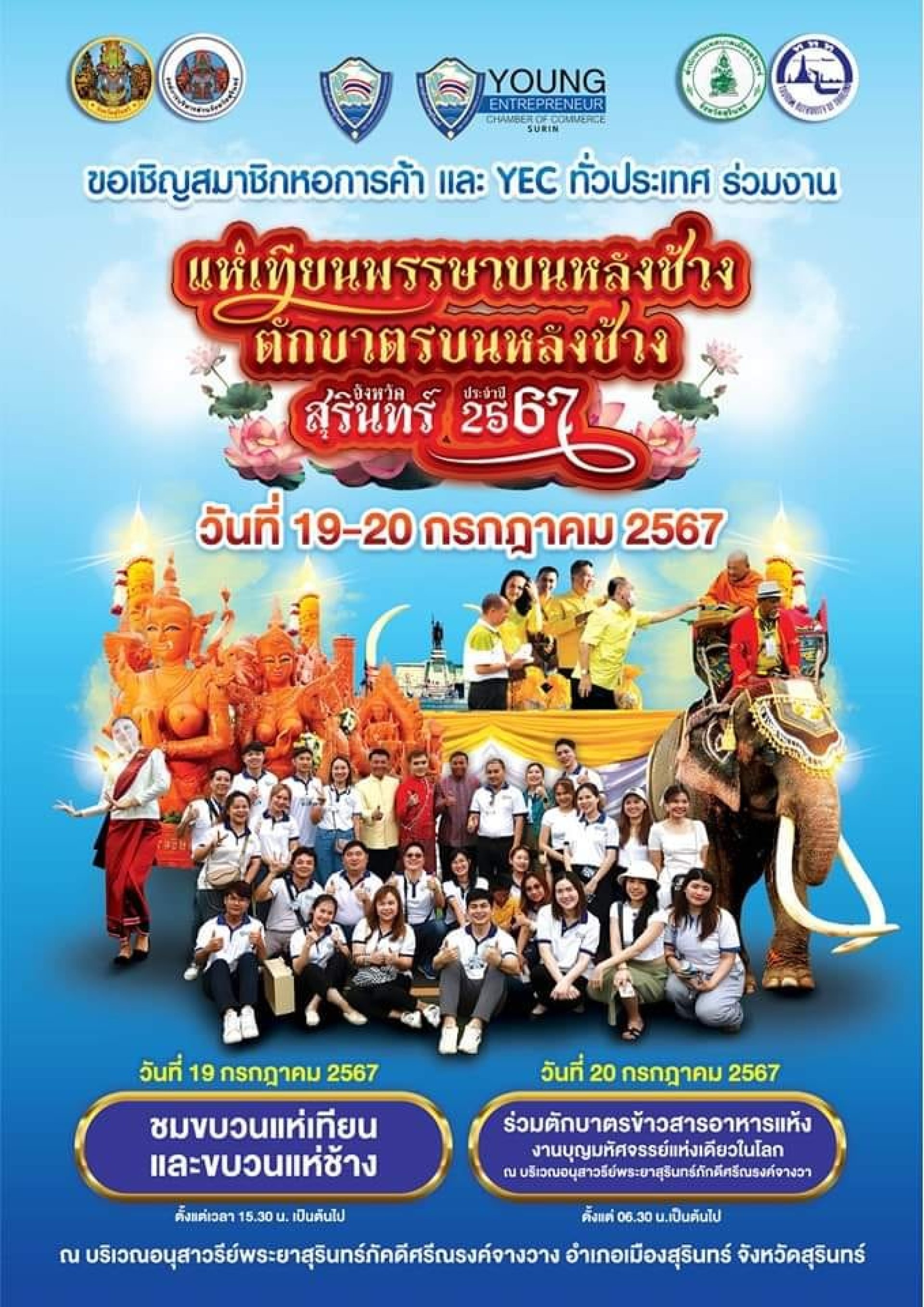 ขอเชิญร่วมงานมหกรรมแห่เทียนพรรษาบนหลังช้างและตักบาตรบนหลังช้างประจำปี2567