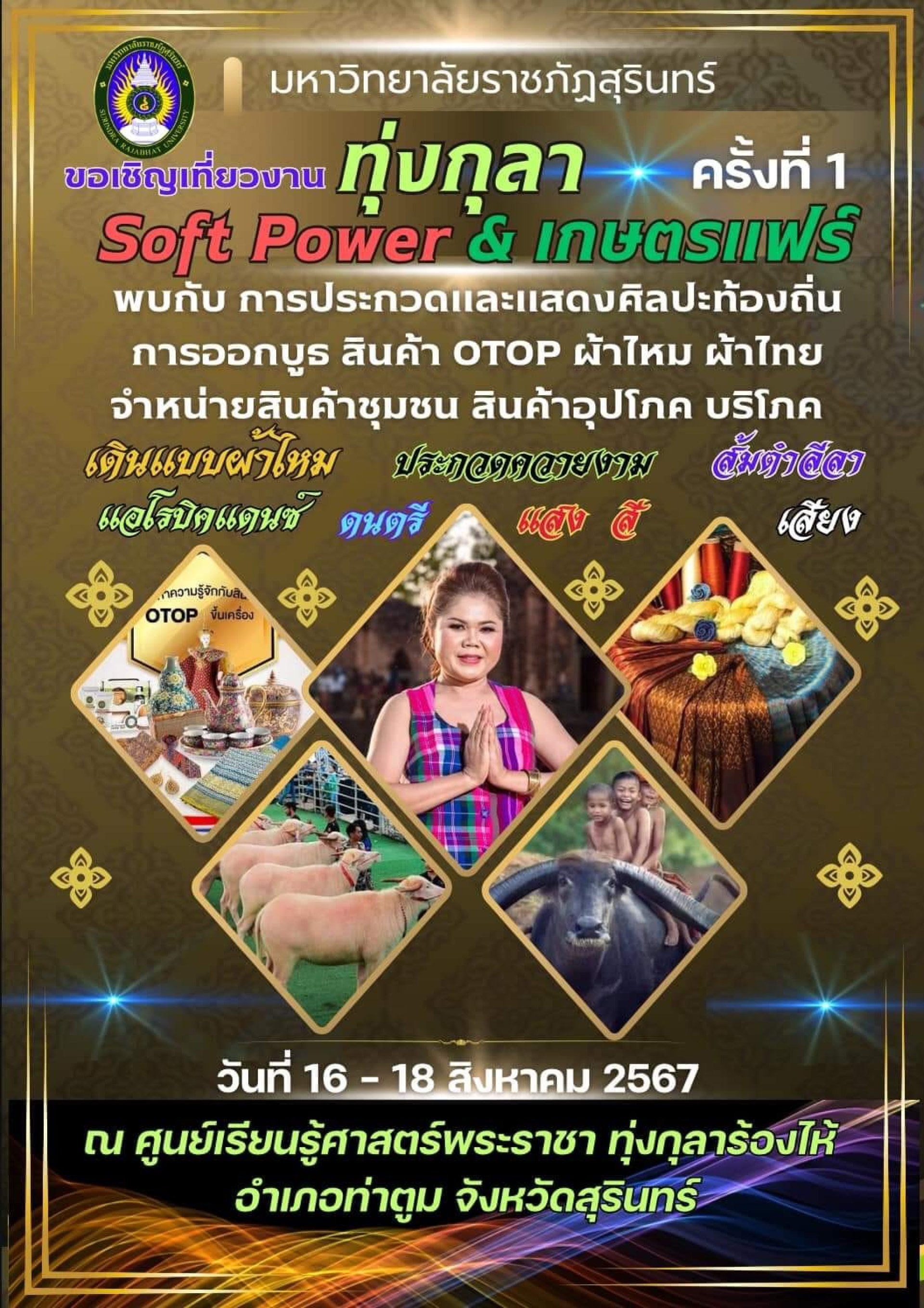 ขอเชิญเที่ยวงาน ทุ่งกุลา Soft Power & เกษตรแฟร์ ครั้ง ที่ 1