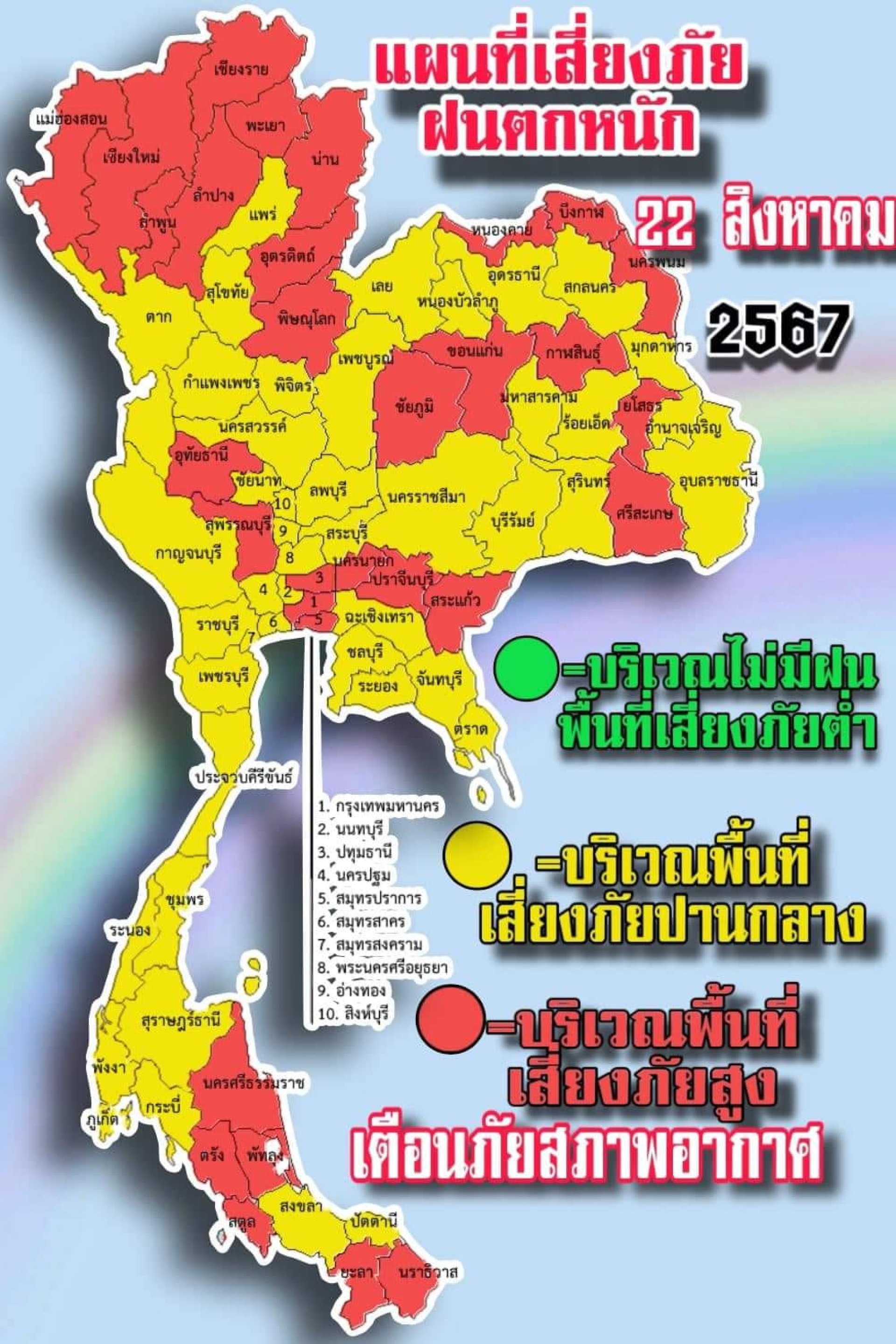 แผนที่เสี่ยงภัยพื้นที่มีฝนตกหนัก วันที่ 22 สิงหาคม 2567