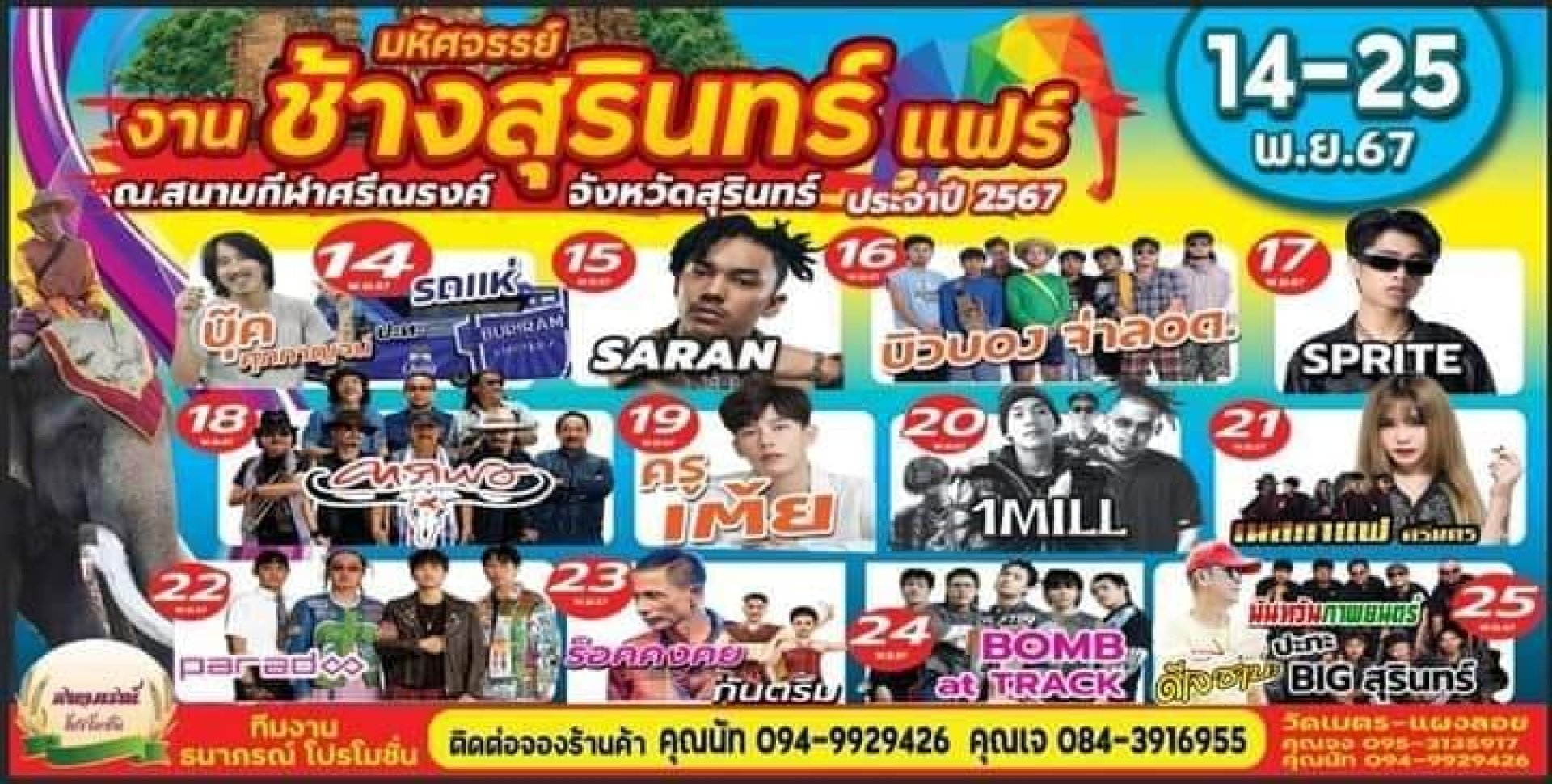 TIMELINE รายชื่อนักร้อง CONCERT มหัศจรรย์งานช้างสุรินทร์2567