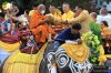 พิธีเจริญพุทธมนต์ การตักบาตรบนหลังช้าง โดยพระสงฆ์จะนั่งบนหลังช้าง และชาวบ้านจะใส่บาตรด้วยข้าวสารอาหารแห้ง